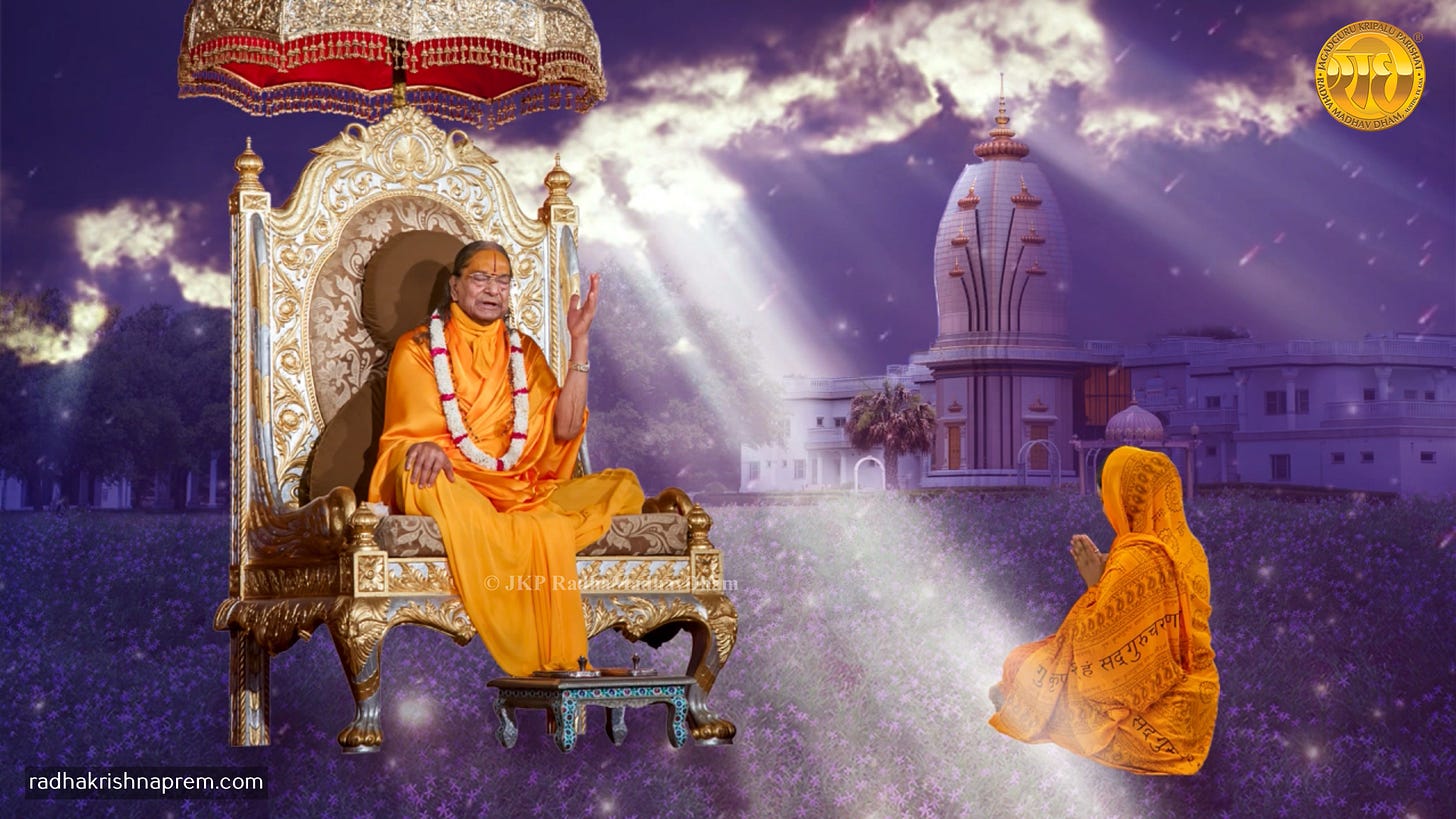 A true Guru is the one who can give the clear knowledge of the scriptures and whose heart is always filled with the Divine love of Krishna. Jagadguru Shree Kripalu ji Maharaj says that such a Divine personality is the true spiritual master who graces the souls.